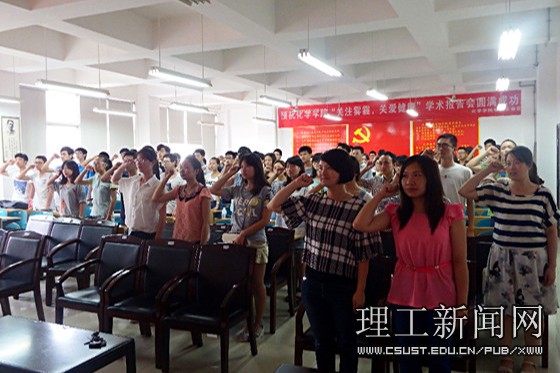 6月11日中午,入党誓词在云塘校区工三A320响起。化学学院全体毕业生党员在党建辅导员汪伦的带领下重温誓词,院党委副书记王明彦,学工办银波、刘文成参加。