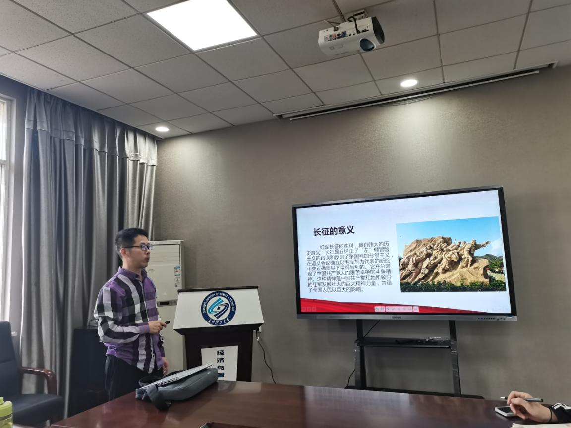 随后,专职组织员丁力以“学习长征精神,增强理想信念”做了“学史增信”讲学。他从长征的时代背景、长征的意义、长征的过程以及长征精神四个方面指出有了坚定的信念,有了一不怕苦,二不怕死的长征精神,中国革命才能转危为安,中国共产党才在艰难险阻中茁壮成长。他总结说“理想信念是我们全体党员精神航标”。