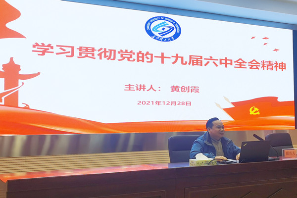 12月28日下午,云顶国际vip8866副校长黄创霞在理科楼A200为水利与环境工程学院、数学与统计学院教师宣讲党的十九届六中全会精神和湖南省第十二次党代会精神。水利学院党委书记喻玲娜主持会议。