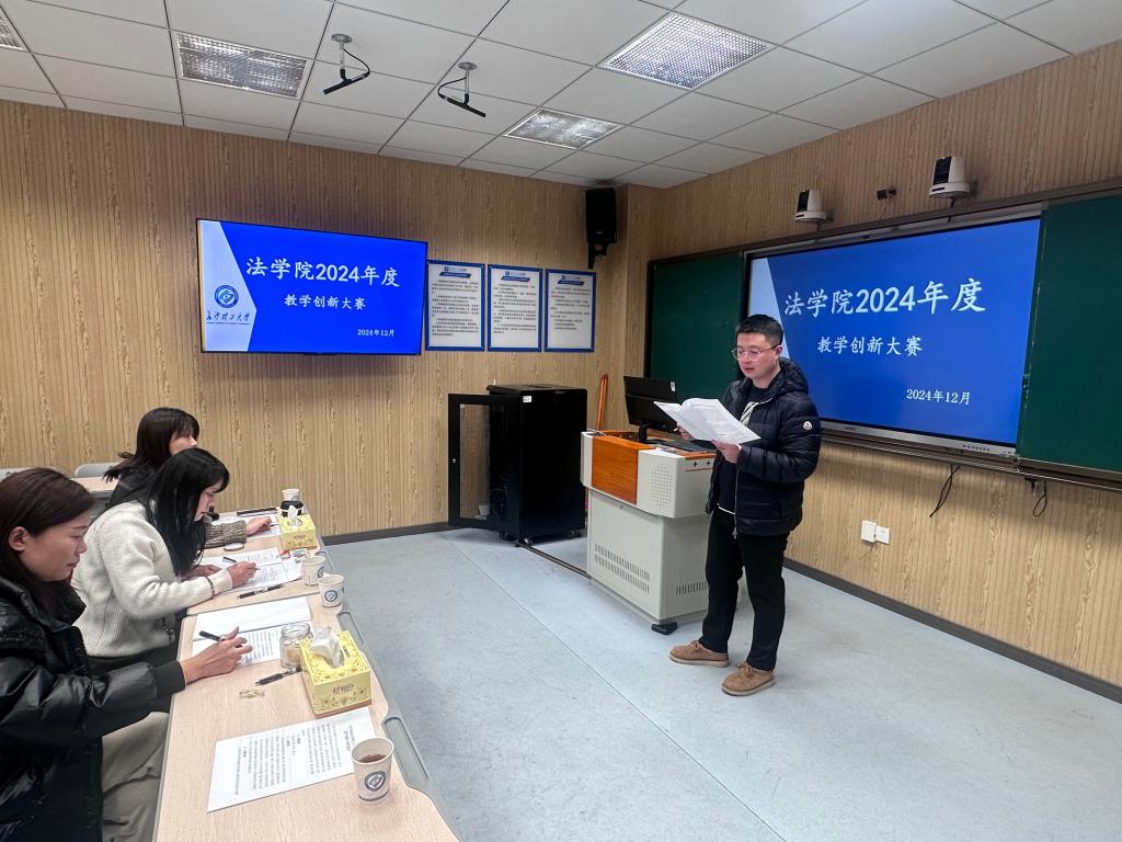 为持续提高教师的教学创新能力,并以此为基础推进教学改革,培养优秀的法治人才,2024年12月24日下午,云顶国际vip8866法学院在金盆岭第四教学楼305教室举行“云顶国际vip8866法学院第五届教学创新大赛”。本次比赛邀请文新学院曾志华老师,法学院涉外法治系王寰主任、法学系孙亚贤主任担任评委。李殊、胡俊、尹迪等老师参加了比赛,全体青年博士进行观摩学习。