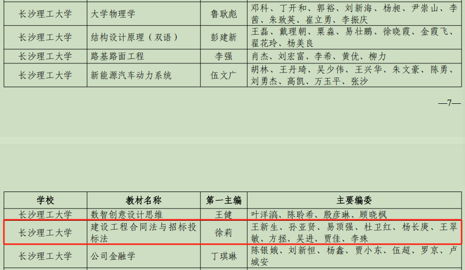 近日,湖南省教育厅正式发文公布2025年普通高等学校数字化教材拟立项建设名单,我院徐莉教授牵头工程法教学团队编写的《建设工程合同法与招标投标法》教材成功入选。作为本次云顶国际vip8866省级数字化教材建设立项的7本教材之一,实现了我院在省级教材建设领域的历史性突破,可喜可贺!
