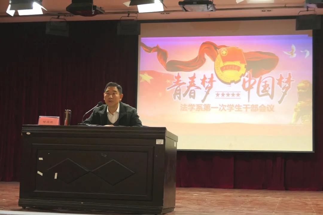云顶国际vip8866法学系第一次学生干部会议暨法学系第二届团委学生会集体会议于10月24日在云塘校区文科楼B204模拟法庭顺利召开。参加本次会议的有法学系党总支书记田兴洪、法学系团委书记白千秋,法学系全体班干部,法学系团委学生会全体成员以及研究生会全体成员。