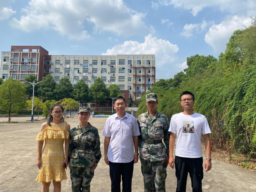 8月22日,法学系党总支副书记田兴洪以及全体辅导员前往训练场地慰问在校集训的民兵连教官们。