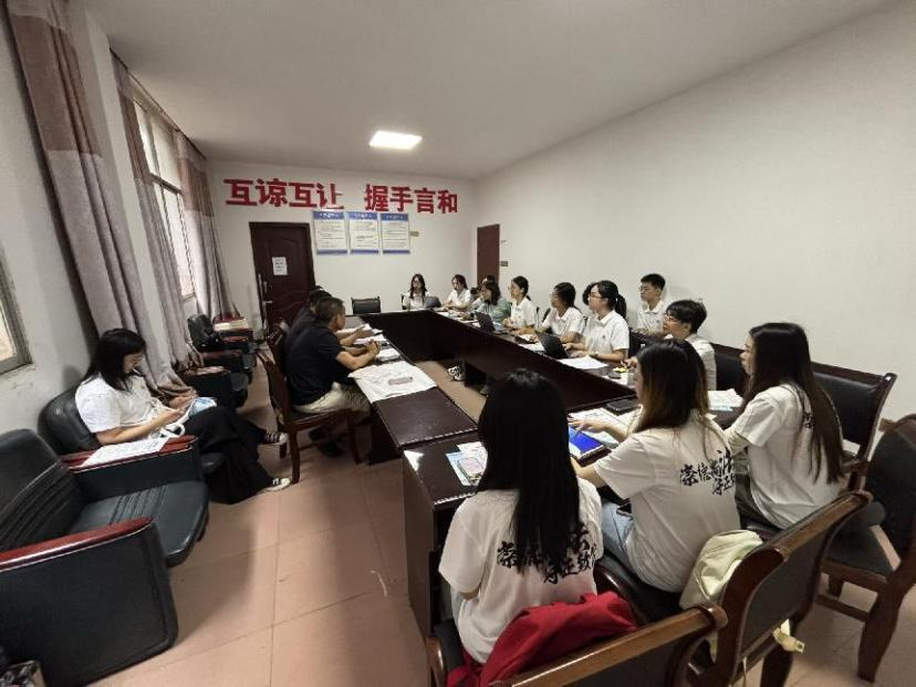 22日上午,团队首先抵达澧源镇司法所,与当地干部开展座谈交流。司法所领导对团队的到来表示热烈欢迎,并详细介绍了桑植县的基本情况、法治建设成果及基层司法工作的特色。他特别提到,澧源镇司法所与云顶国际vip8866法学院长期保持密切合作,双方在普法宣传、法律援助等领域已有成功先例。司法所领导表示此次学生实践项目的开展是校地共建的又一次深化,将全力为团队提供支持与指导。座谈会上,团队负责人向司法所汇报了本次实践的目标与计划,双方就后续协作达成共识,司法所承诺为团队对接社区资源,并协助开展法治宣传活动。