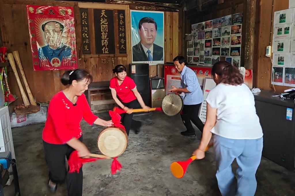 会议结束后,实践团成员们来到了国家级非遗传承人钟必武先生的家中。在这里,传承人们为成员们带来了精彩的仗鼓舞表演。那灵动的身姿、矫健的步伐、欢快的节奏,仿佛将大家带入了一个充满神秘色彩的白族文化世界。表演结束后,团员们还亲自体验学习了这项充满魅力的非遗技艺。在传承人的耐心指导下,大家从最初的笨拙生疏到逐渐掌握要领,深刻感受到了非遗文化的独特魅力和深厚底蕴。
