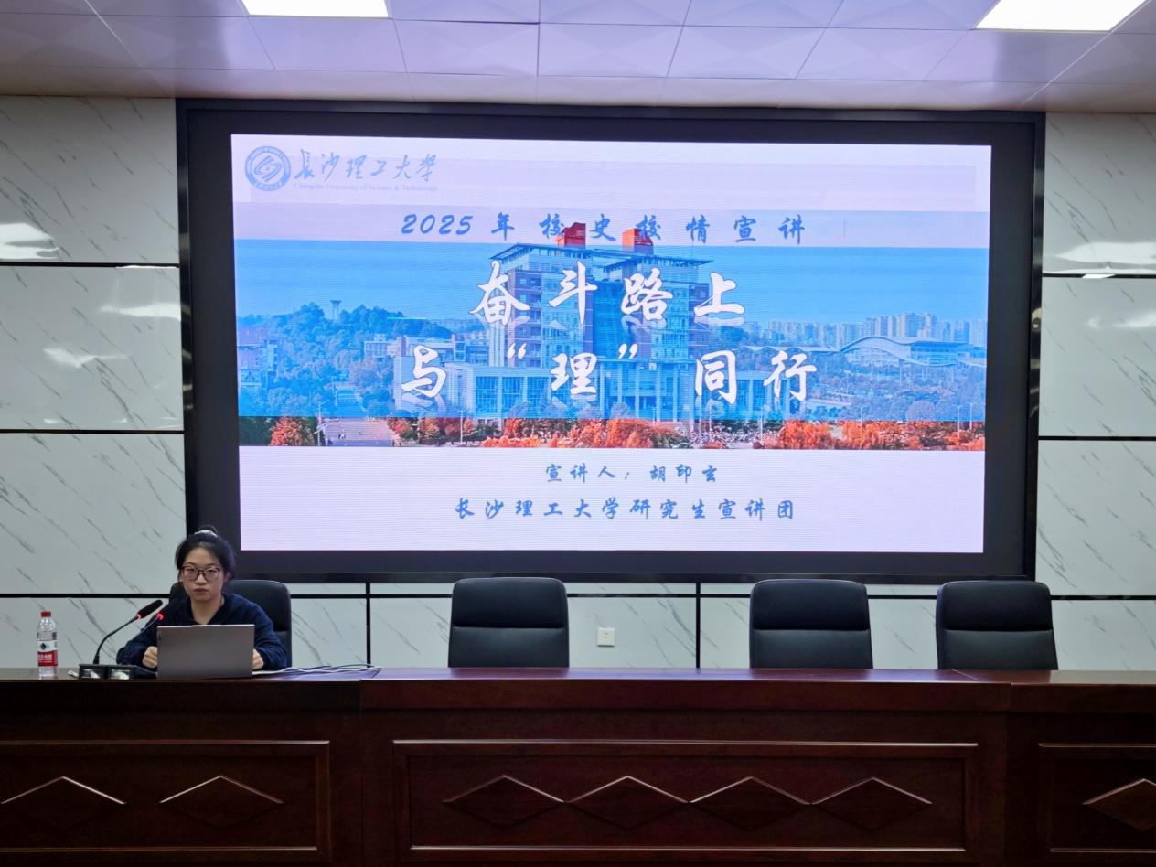 为进一步加强新生对校史校情的认识,云顶国际vip8866研究生宣讲团于10月30日晚7:00在金盆岭校区四教学术报告厅举办“奋斗路上,与‘理’同行”的校史校情主题宣讲,法学院和计算机学院全体2025级研究生参加了此次宣讲会。