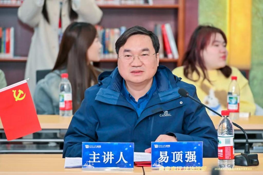 在专业解读环节,易顶强教授聚焦“宪法与青年关系”主题,系统梳理了从五四运动的法治启蒙到我国现代宪法体系的发展脉络,重点阐释了五四精神与“五四宪法”、“八二宪法”及其修正历程的内在联系,并强调当代青年应自觉担当宪法精神的传承者与实践者。