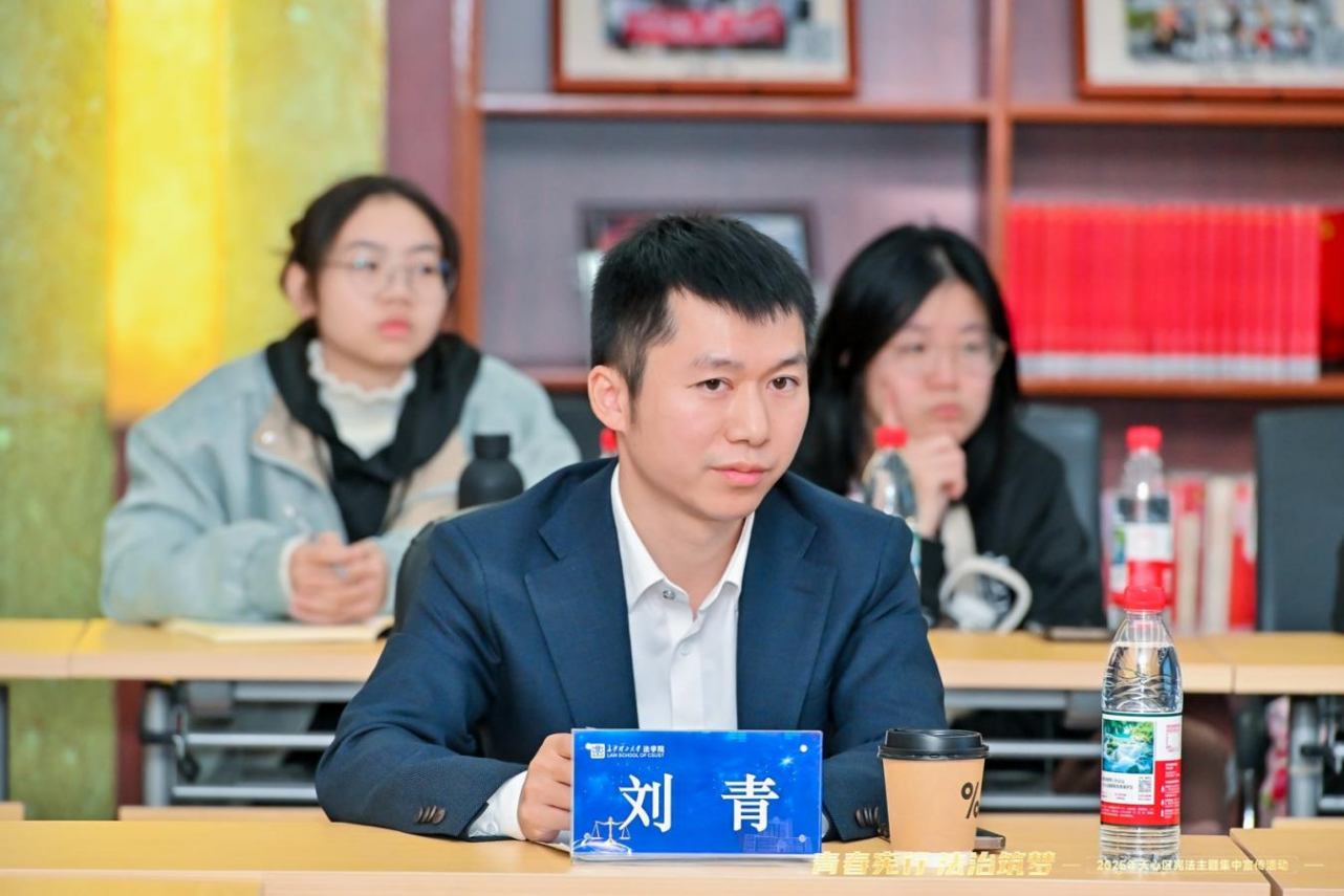 刘青律师则从自身从事律师职业及创立律所的经验出发,与在场青年法学生分享了法学生职业成长与创业路径,建议大家要及时树立职业规划意识,明细未来发展途径,认识法学创业的风险与机遇,在校做好能力积累。