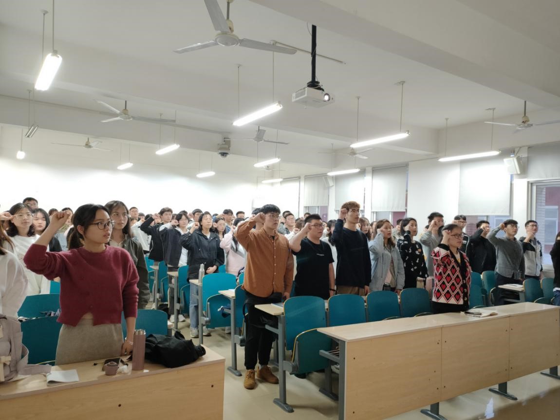 庄严地奏唱国歌后,培训班班长向蔚介绍了发展对象培训班的培训制度、活动安排与班委名单,对在座的发展对象提出学习要求与纪律要求,希望同学们端正学习态度,从思想上、行动上早日入党。