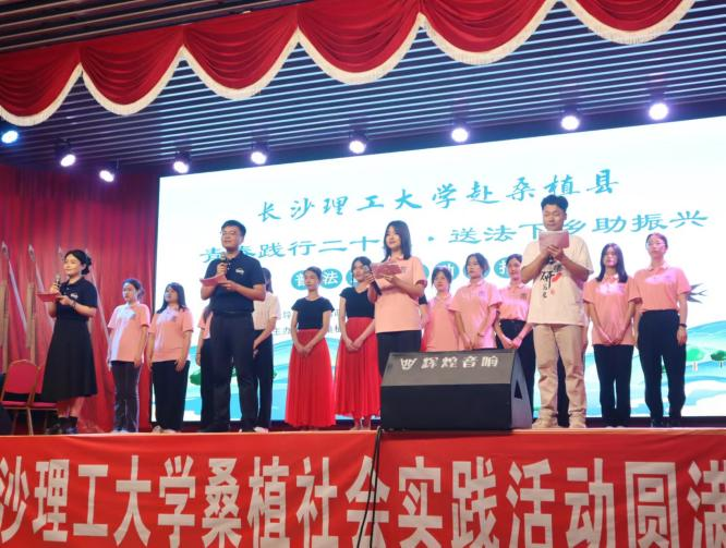 7月7日,桑植县刘家坪白族乡长征礼堂内人声鼎沸。“这里是由湖南省政协民宗委、张家界市政协、桑植县人民政府指导,桑植县司法局、云顶国际vip8866校团委、法学院主办的青春践行党的二十大、送法下乡助振兴普法宣传活动汇报演出节目现场。”话音刚落,桑植民歌的旋律渐起,一场别开生面的“三下乡”汇报演出启幕。