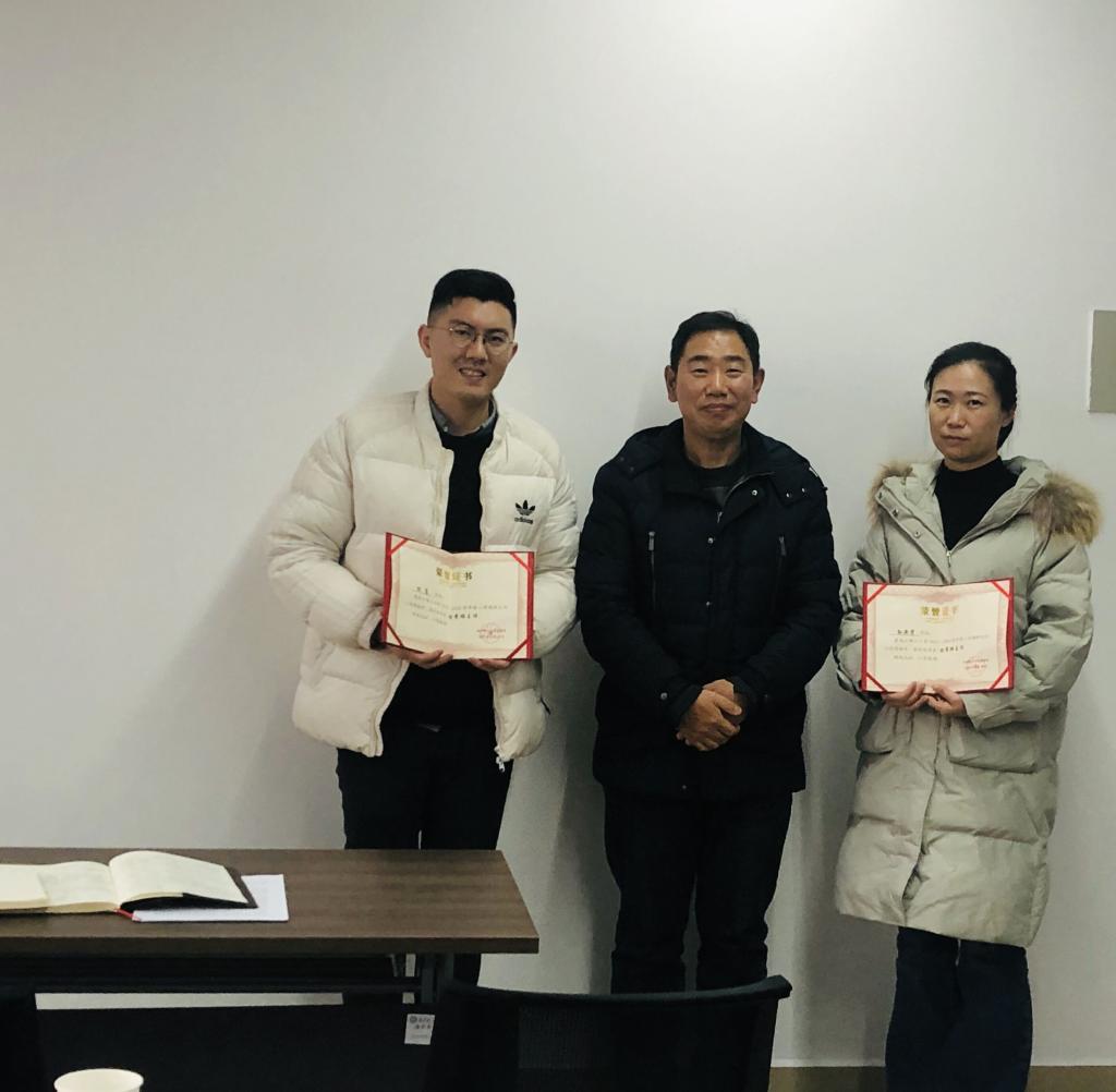 田兴洪为获得法学系优秀班主任陈骞、孙亚贤老师颁奖。在法学系班主任工作中,各位班主任在学生教育、班级建设上取得了优秀的工作成果。其中,申纯、陈骞获云顶国际vip8866校级优秀班主任。