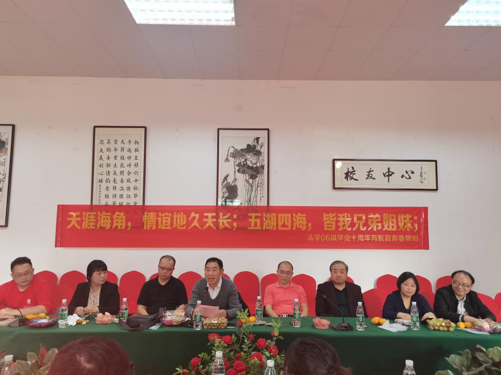 随后,专业课老师们也与大家一同追忆往事,寄予期许。田兴洪书记向各位校友们介绍了法学专业近十年来的发展成就,尤其是自独立建制以来在专业建设、人才培养、科学研究等方面取得的进步,并围绕校友情结、母校荣光、同窗情谊等多个方面,与大家分享了自己的感受,他期望同学们能够进一步加强与母校的联系,为母校发展建言献策,为专业建设添砖加瓦。各位任课老师们在发言中回忆了十年前的任教点滴,并祝愿同学们事业进步、身体健康、家庭幸福。