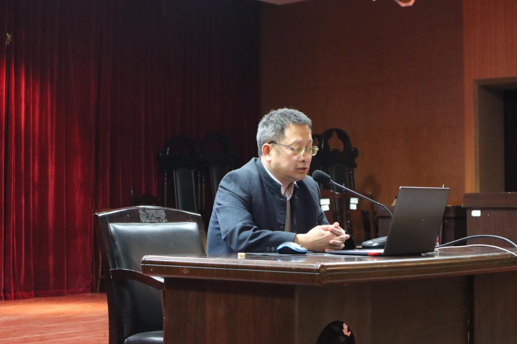 为贯彻落实党史学习专题教育,4月20日下午,法学院在文科楼模拟法庭召开党史学习专题教育辅导报告会。会议由党总支书记田兴洪主持,法学院全体师生参加。