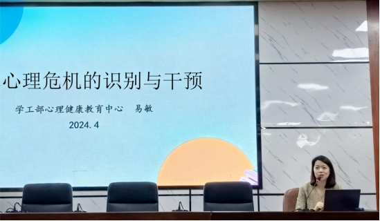 会议第三项是由学工部心理健康教育中心主任易敏为全体教职工讲授《心理危机的识别与干预》,旨在增强教职工对潜在心理危机的敏感度与应对能力,促进形成全员参与的心理健康防护网络,共同为营造和谐、安全的校园环境贡献力量。