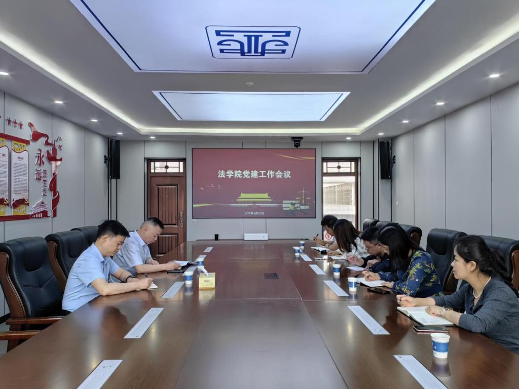 4月22日上午,法学院在金盆岭校区四号教学楼307会议室召开党建工作会议。院党委书记龚文斌主持会议,院党委副书记汪伦及各党支部书记参加会议。