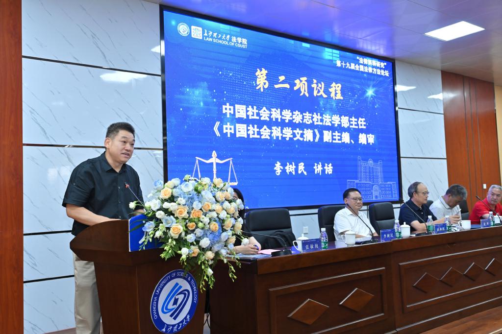 中国社会科学杂志社法学部主任、《中国社会科学文摘》副主编、编审李树民致辞,其首先对法律方法论坛表示感谢,并提出法律方法研究需要厘清几个认识:一是何为法律方法;二是法律方法的科学性和时代性;三是法律方法的功能。