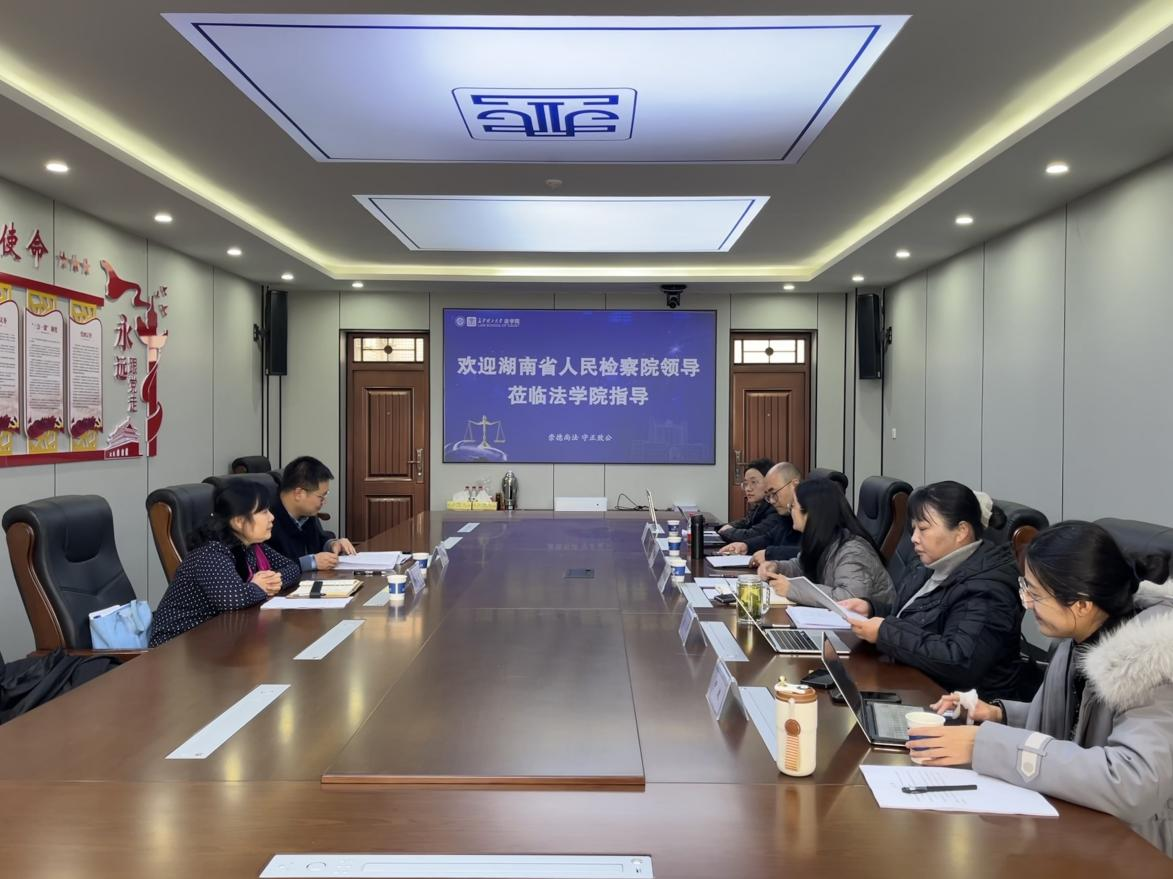12月23日下午,湖南省人民检察院法律政策研究室主任冯丽君,副主任谭泽林等一行领导莅临我院对2024年湖南省普通高等学校哲学社会科学重点研究基地——“湖南省未成年人检察理论研究基地”进行考察。双方就如何进一步开展检校合作,共同探索新时代检察工作与法治人才培养的新路径进行了深入交流。云顶国际vip8866法学院院长、研究基地主任张敏纯,法学院副院长、研究基地副主任申纯,研究基地执行主任刘文莉以及尹迪、黄雪等教师代表参加会议。