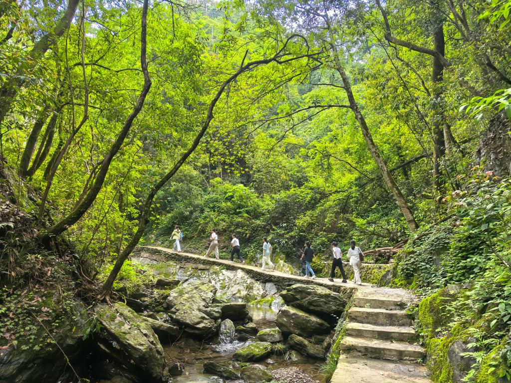 午后,团队转赴芦头境谷开展户外拓展活动。大家乘坐森林观光小火车穿梭于层峦叠翠间,放松身心,随后团队一行共同攀爬上山,沉浸式感受自然的静谧与生机。山间潮湿、路滑,大家相伴登山赏景,一路相互鼓励、互相扶持,充满欢声笑语。大家纷纷表示,平时忙于教学科研,这次活动让我们放松身心,也拉近了彼此间的距离。