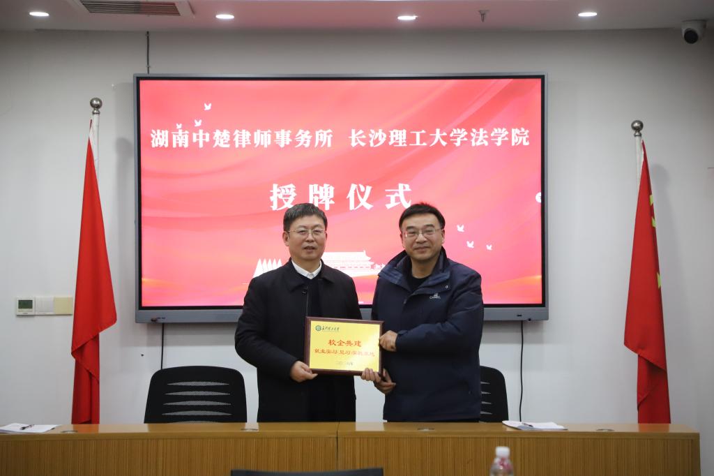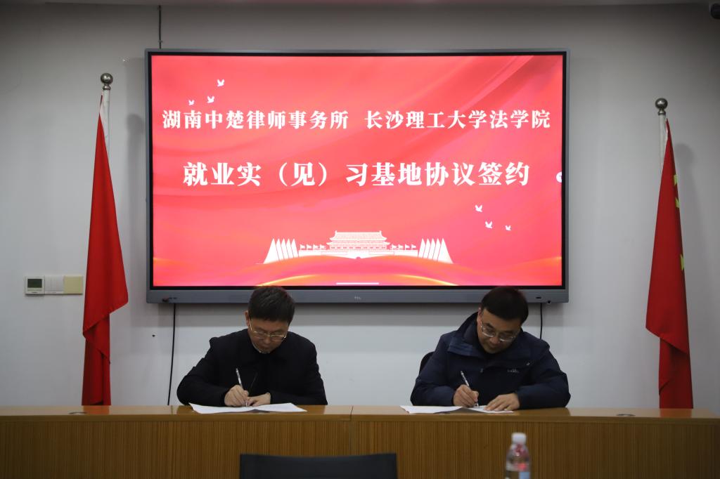 随后,吴勇、杨建明代表学院和事务所签署就业实(见)习基地合作协议,随后举行了简单而隆重的授牌仪式,标志着云顶国际vip8866法学院与湖南中楚律师事务所的合作正式落地。