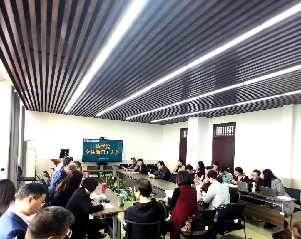 百年征程波澜壮阔,百年奋斗成就辉煌。为深入学习贯彻党的十九届六中全会精神,切实将全会精神贯彻到学院工作中,11月23日下午,法学院在文科楼C618多功能报告厅召开全体教职工大会,学习宣传党的十九届六中全会精神。