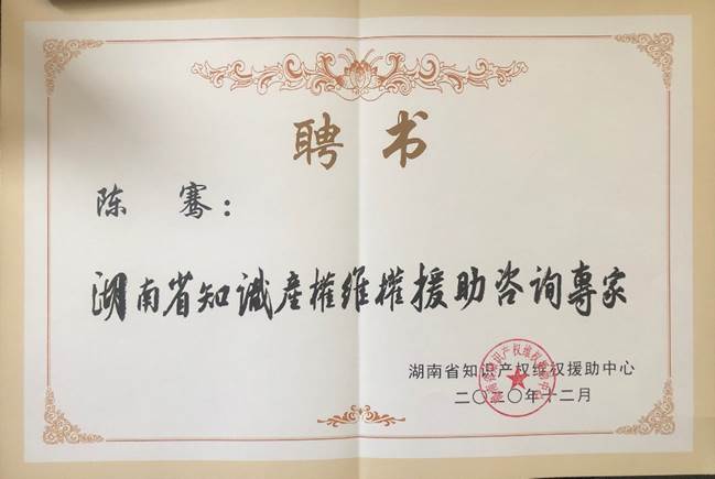 根据工作安排,知识产权维权援助咨询专家将发挥法律优势,为我省知识产权立法、专利侵权判定、海外知识产权维权等提供专业支撑和智力支持。此前,陈骞博士作为湖南省知识产权维权援助咨询专家参与包括中非经贸博览会等大型展会的知识产权投诉处理。