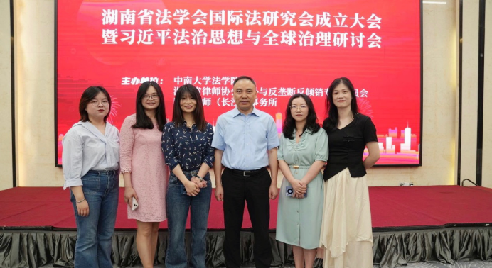 2023年6月17日,湖南省法学会国际法研究会成立大会暨习近平法治思想与全球治理研讨会在长沙召开。本次会议由中南大学法学院、湖南省律师协会涉外与反垄断反倾销专业委员会、国浩律师(长沙)事务所共同主办。中国国际法学会会长、中国国际私法学会会长、中国政法大学教授黄进,中国人民大学法学院党委书记、第九届“全国杰出青年法学家”杜焕芳,浙江工商大学“西湖学者”特聘教授古祖雪等嘉宾出席成立大会。我院副院长、国际法学研究团队负责人徐莉副教授及陈淑芬副教授、陈杨副教授、王寰博士、刘明萍博士、贾佳博士应邀参加了本次会议并作小组发言。
