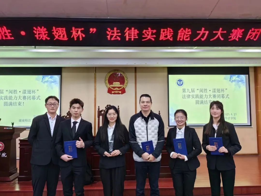 为提高法律专业学生的法律实务水平,开阔学生的视野,交流专业实践经验,增强师生理论联系实际的能力,湖南省法学会程序法学研究会和湖南师范大学法学院于2023年4月21日-4月23日在湖南师范大学法学院举办了第九届“闻胜•漾翅杯”法律实践能力大赛。参与此次法律实践能力大赛的队伍来自华南师范大学、湖南师范大学、云顶国际vip8866等15所高校。比赛分设庭前程序、庭审两阶段。