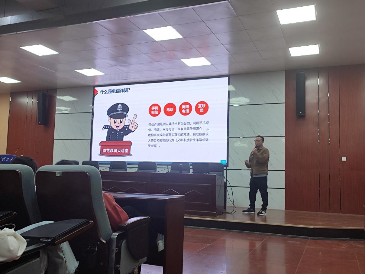 最后,宋老师介绍了多种常见骗术和相应的预防措施。他指出,防范电信诈骗,一是要警惕“熟人”网络借款;二是要远离网络刷单,做到不贪、不占、不转账,提高警惕之心,筑牢安全防线;三是要提高安全意识,保护好个人隐私、个人信息。(文/王幸 图/王幸 审核/申纯)