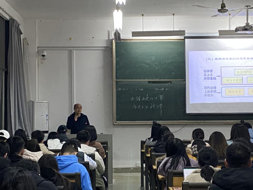 为提高我院学生对刑法的发展与扩张的认识,法学院于12月15日晚在金盆岭校区7号教学楼314教室举行了题为《从罪行法定谈我国当前刑法的发展》的专题讲座。讲座由云顶国际vip8866法学院副院长申纯主讲,法学院大一新生及其他院系新生积极到场参加学习。