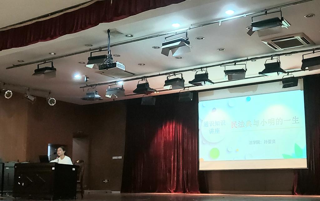 4月22日19:00,法学院在文科楼模拟法庭举办了以《民法典与小明的一生》为题的学术讲座,本次讲座由孙亚贤博士主讲,面向全校学生开放。讲座吸引了云塘校区各院系约百余名同学前来参加。