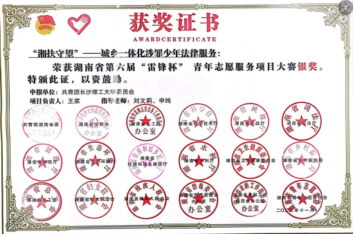 为了将所学理论知识与实践相结合,帮助学生提高逻辑思维和辩论能力,为学生将来从事法律实务工作奠定基础,她多次指导学生参加模拟法庭大赛、案例大赛等高校省级比赛,多次斩获竞赛一等奖。同时,指导学生参加湖南省首届、第四届、第七届青年志愿服务大赛,均获得银奖