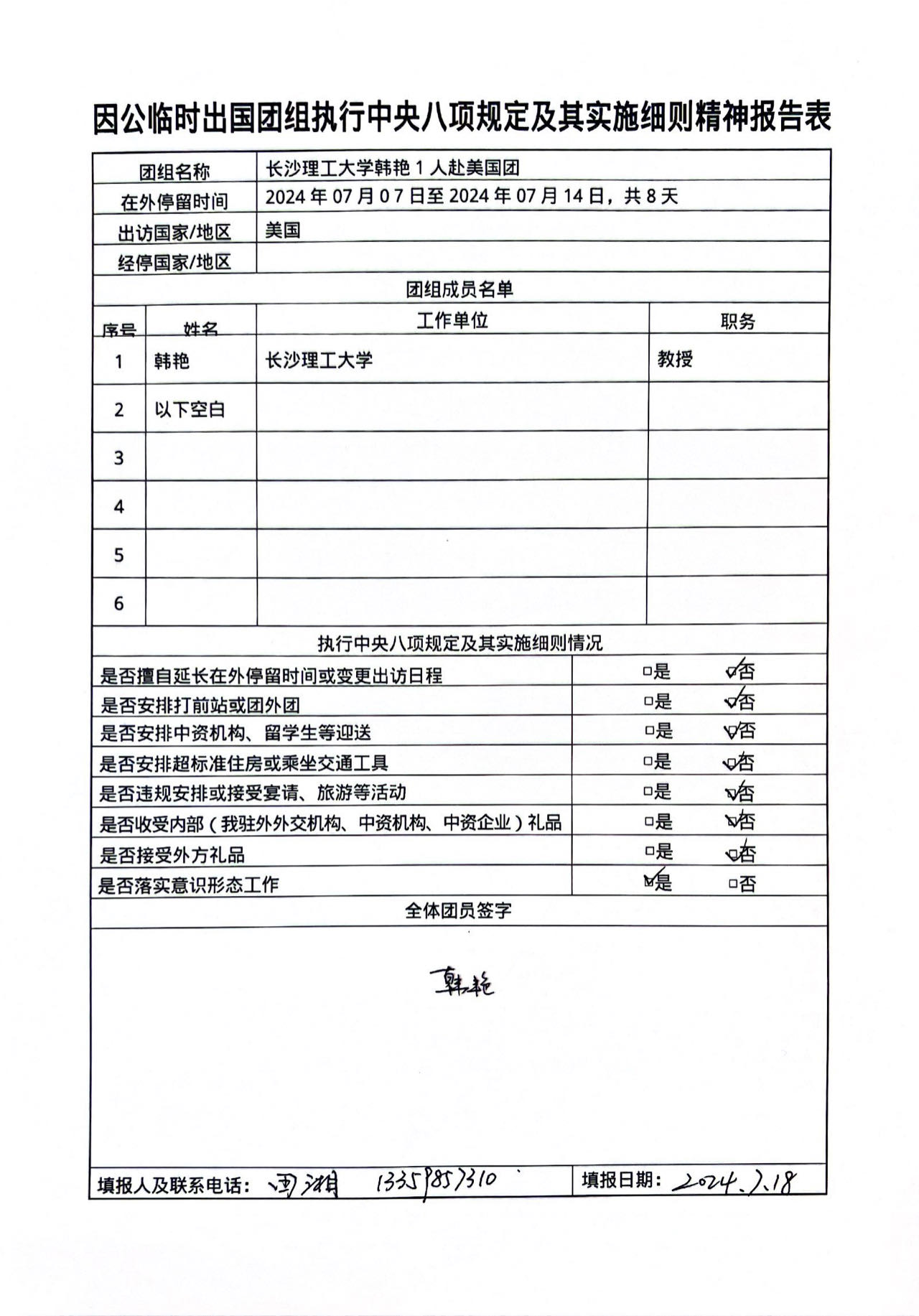 三、《因公临时出国团组执行中央八项规定及其实施细则精神报告表》