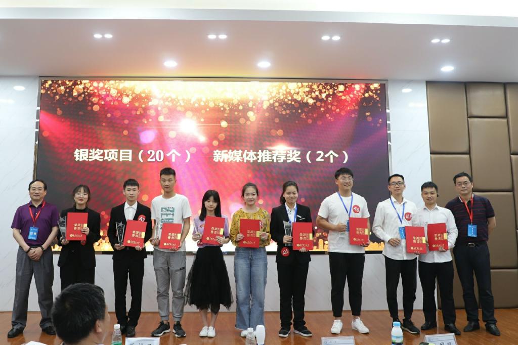 本次大赛设主赛道(分为创意组、初创组、成长组、师生共创组)和“青年红色筑梦之旅”赛道(分为公益组、商业组)。共有1089个项目报名参赛(其中主赛道991项,青红赛道95项),参赛学生人数4297人。经过学院预选赛、学校半决赛等层层角逐,最终有31个项目团队脱颖而出,进入决赛。各项目团队通过PPT、视频进行路演,从项目背景、产品(服务)介绍、团队成员、市场分析、发展前景等方面向评委老师和现场人员精彩展示了各自的项目,内容涉及新材料、环保健康、人工智能、食品安全、非遗文化、服饰定制等多个领域。