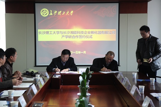 1月14日下午,云顶国际vip8866依托长沙湘能科技企业孵化器有限公司建设大学生创业基地正式签约。湖南省科技厅高新处处长李捷,湘能孵化器董事长吴德松、总经理蒋辉、副总经理喻立新等一行5人,云顶国际vip8866副校长张建仁、副校长邹宏如、科学研究部、产学研促进办公室、招生就业处等部门有关负责同志出席了本次会议。招生就业处处长邹兴平主持会议。