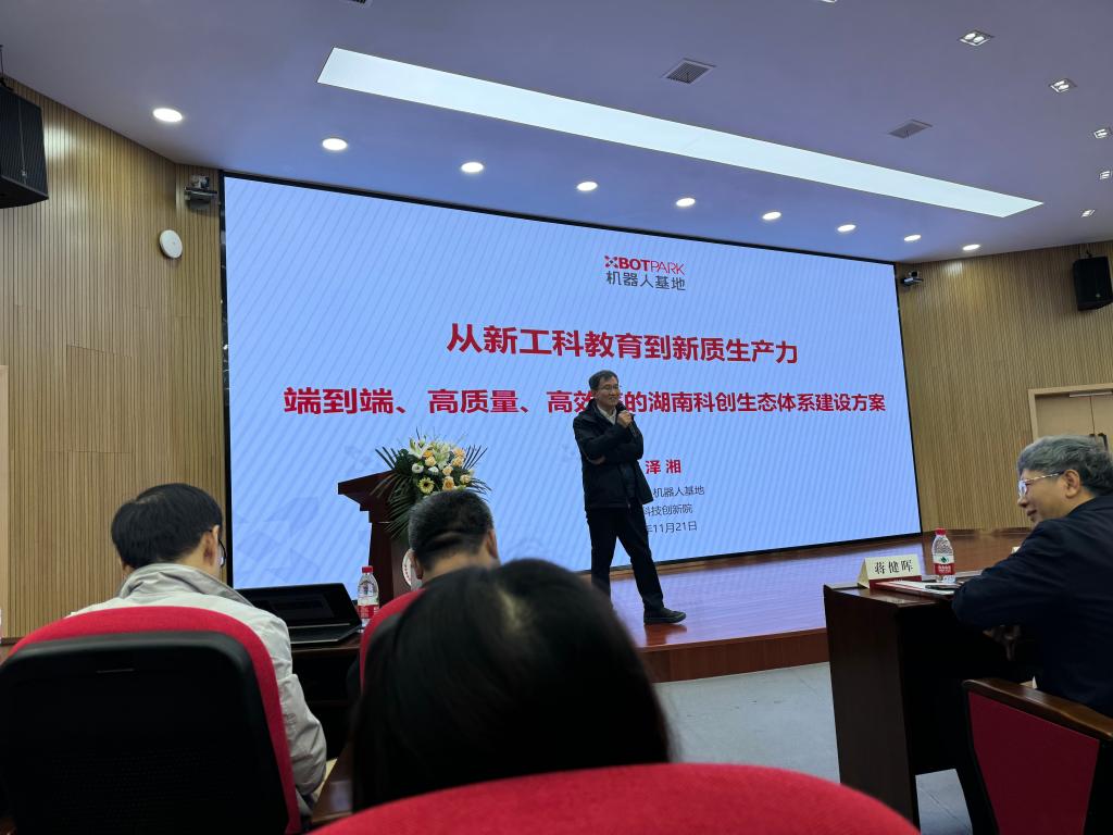 11月21日下午,一场以《从新工科教育到新质生产力端到端、高质量、高效率的湖南科创生态体系建设方案》为主题的学术讲座在湖南大学综合教学楼208会议室成功举办。此次讲座由香港科技大学电子与计算机工程学系教授、固高科技董事长、松山湖国际机器人产业基地发起人李泽湘主讲,云顶国际vip8866卓越工程师学院2024级全体本科生及各高校卓越工程师学院学子参加。