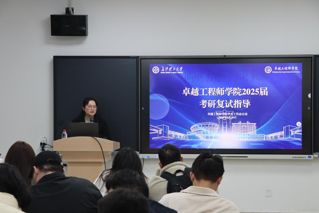 3月10日16时,卓越工程师学院在新工训大楼313教室组织考研复试专题讲座。本次讲座由邓丽萤老师主讲,学院2021级、2022级部分同学参加,旨在帮助即将参加考研复试及计划考研的学生更好地备考,提高面试技巧和综合素质。