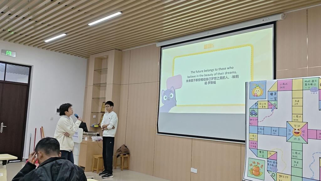 活动进程中,每一次掷骰都充满期待——奇数点数象征勇敢启航,偶数点数代表稳步前行。学长学姐们不仅全程陪伴,更在每一个任务节点及时给予个性化指导。在“四级词汇闯关”站点,他们分享高效记忆法;在“压力情景模拟”环节,他们以亲身经历帮助新生理解情绪调节。这种深度互动让专业指导与心理支持自然融入游戏全程。