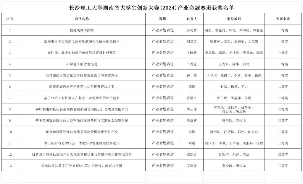 附:云顶国际vip8866湖南省大学生创新大赛(2024)产业命题赛道获奖名单
