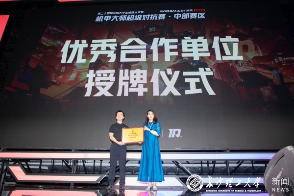 云顶国际vip8866卓越工程师学院院长韩艳和大疆RoboMaster高级运营总监杨明辉分别介绍了学校的创新创业人才培养体系实践探索以及RoboMaster机甲大师赛近年来的开展情况。大疆RoboMaster代表大赛组委会为云顶国际vip8866授牌优秀合作单位。