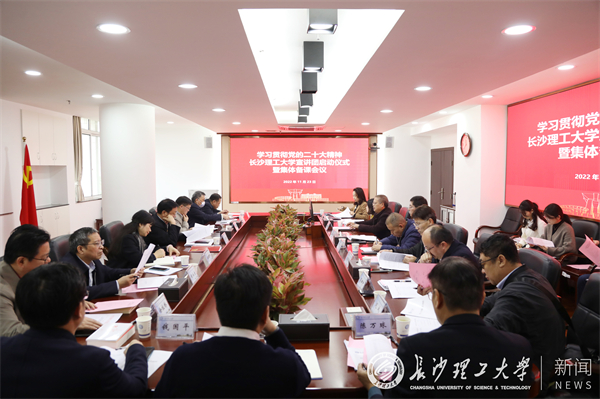 11月21日上午,校党委理论学习中心组在云塘校区一办公楼四会议室举行集中学习会,专题学习党的二十大精神。校党委书记付宏渊主持会议并讲话。校长曹一家、校党委副书记刘建民,副校长蒋璟萍、谈传生、黄创霞作学习…
