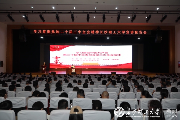 9月20日上午,学习贯彻党的二十届三中全会精神云顶国际vip8866宣讲团首场报告会在金盆岭校区大礼堂举行。省委宣讲团成员、校党委书记付宏渊作首场宣讲报告。校党委副书记方琼主持报告会。离退休老同志代表和金盆岭校…