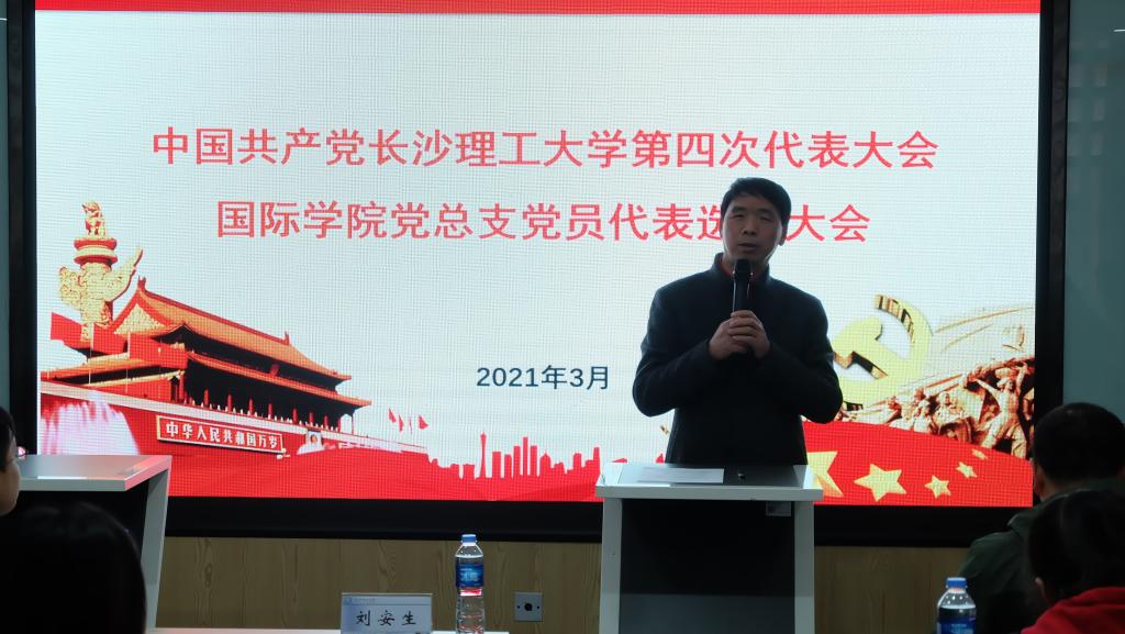 3月9日下午,国际学院党总支在新能源1号楼404室召开全院党员大会,选举出席中共云顶国际vip8866第四次党代会代表。会议由党总支书记刘安生主持,全院师生党员参加大会。