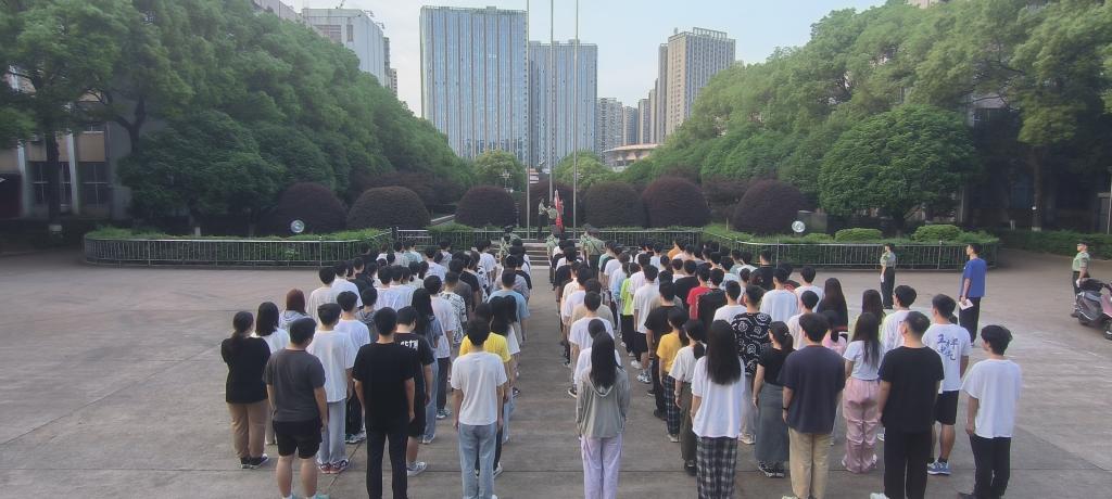 为进一步学习贯彻习近平总书记对青年学生成长成才的殷殷嘱托,激发青年学子的爱国热情,5月4日早上,电气学院五四青年节升国旗仪式主题教育活动在金盆岭校区办公大楼前坪举行。电气学院22级辅导员楚艳鸽、吴佳骐、朱尚品和学生代表150余人参加本次活动。