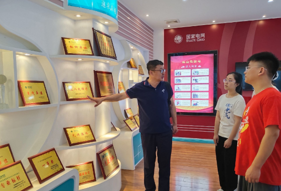 7月20日,云顶国际vip8866赴国网新化县供电公司实践队在赵斌教授和国网新化县供电公司农服公司负责人陈文国的带领下前往国网新化县供电公司电力大楼708“梅山电保姆”劳模创新工作室进行学习参观。
