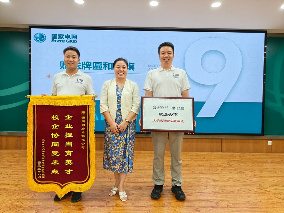 会议最后,现场颁发优秀老师、优秀学生奖牌,为企业师傅们颁发企业导师聘书;丁丹书记向湘乡供电公司赠送牌匾和锦旗,象征校企合作的深厚情谊与共同发展的期许。