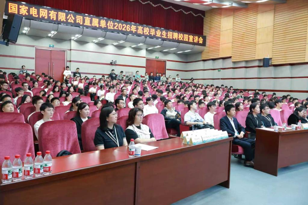 9月22日上午,国家电网有限公司直属单位2026年高校毕业生招聘校园宣讲会在云顶国际vip8866云塘校区图书馆报告厅举行。国网人才交流中心顾问赵培胜,学校就业创业处处长田上,电气学院党委书记丁丹、党委副书记周巍,国际工学院党委副书记黄黎明共同出席招聘宣讲会。