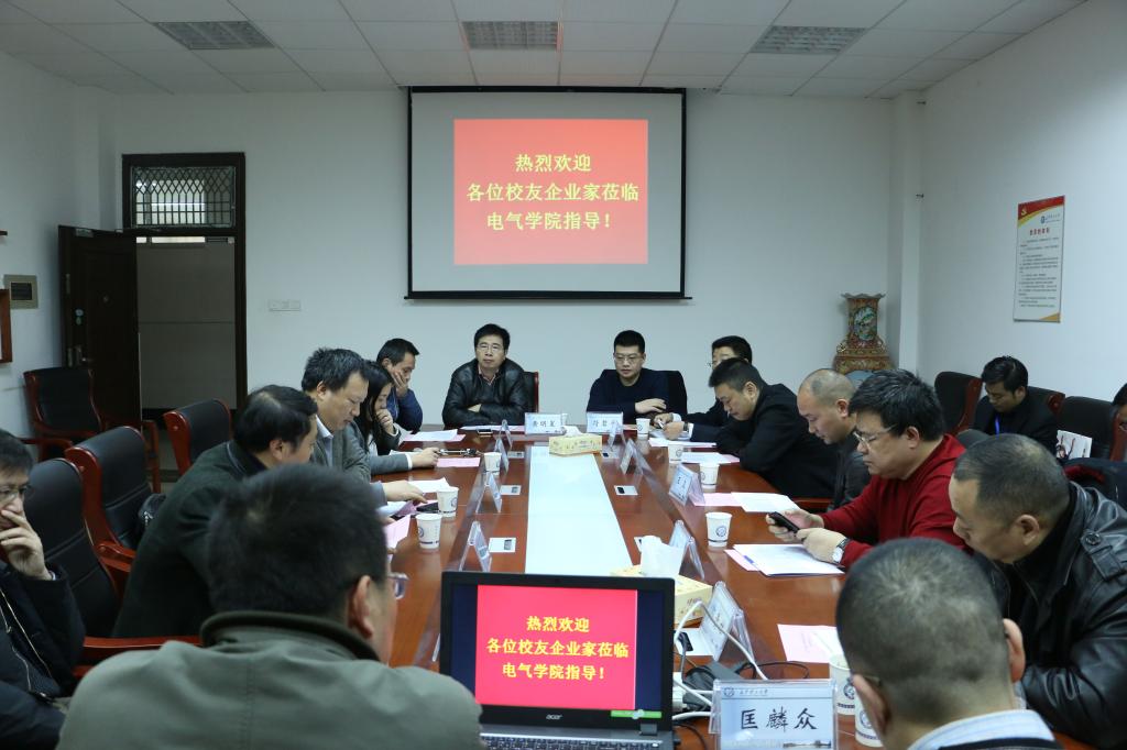 座谈会上,学院党委副书记丁丹向校友和企业家们展示了电气学院举行的暑期实践活动及其成果,副院长夏向阳介绍了学院发展的整体情况。各位校友介绍了毕业后的心路历程和自己的创业史,畅谈互联网背景下的创业思维及校企联合育人途径。黄明星说,无论是返校参加校友企业联盟大会还是创业,内心都有一种深深的情结,一种是对母校的情结,一种是对专业的情结。其他校友纷纷表示,这种情结是大家共同的心声。大家一致表示,期待今后与学院进一步加强产学研合作,共同推动人才培养工作。