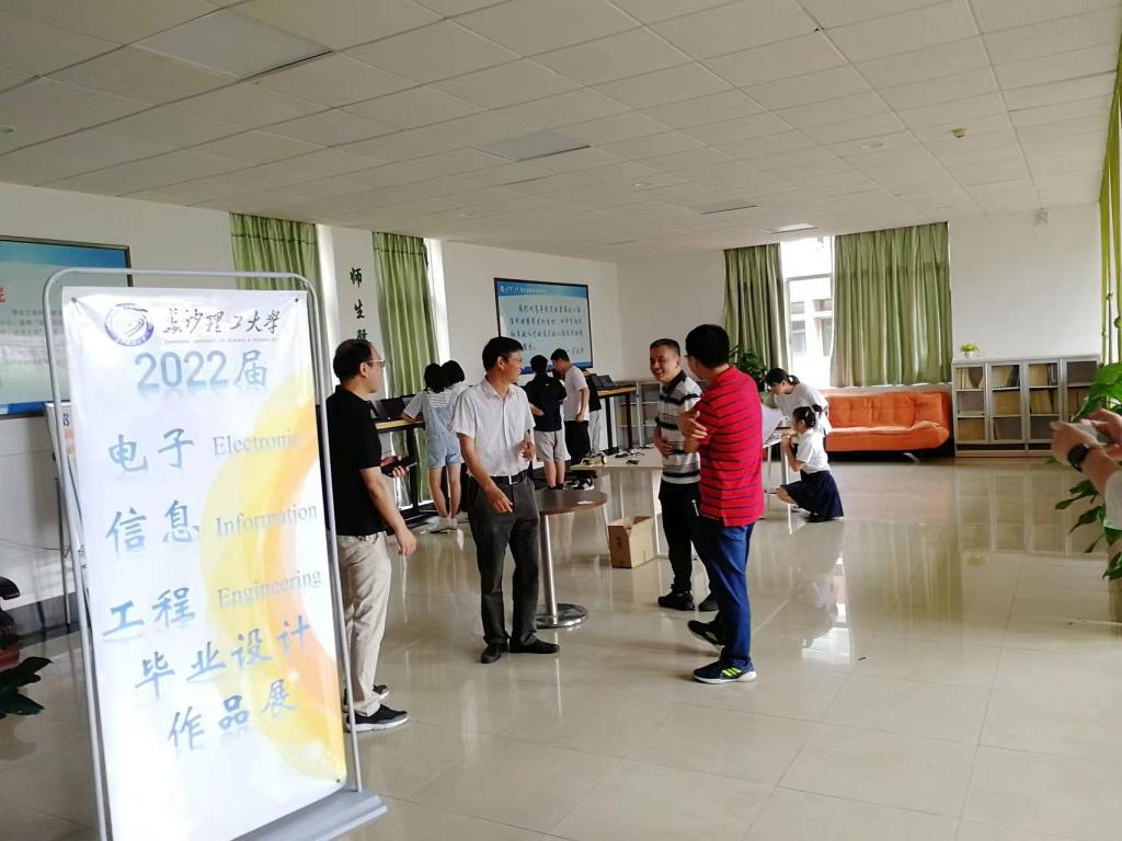 2022年6月14日上午十点,在云顶国际vip8866云塘校区工一B区三楼大厅举办了电气与信息工程学院电子信息工程专业2022届毕业设计作品展。本次毕设作品展邀请了电气学院副院长唐欣教授、樊绍胜教授、智电系电子专业曾喆昭、李鸿、王小华等20多位教师观摩评价,电子信息工程2018级全体毕业生以及2019、2020级部分学生参加。参加观摩评价的老师们与毕设参展作品的每位同学进行交流,探讨作品,同时给予相应的建议。老师们这最后一堂现场课不仅是传授着知识,更是表达了对即将完成学业的毕业生最美好的期许。经现场演示和老师们的评议,作品展最后评出了一、二、三等奖共8件优秀作品。