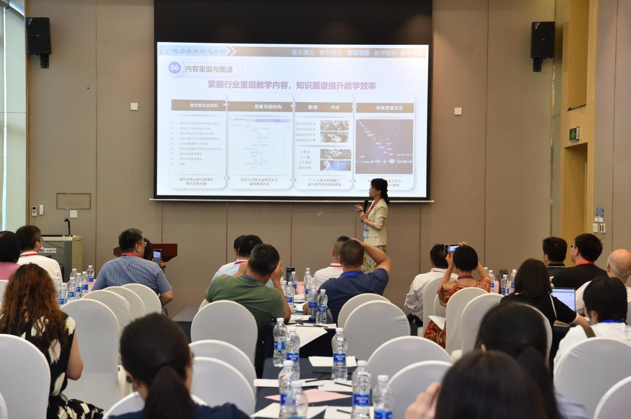 王媛媛在分会场作了“AI赋能,电亮未来--地方高校电力系统暂态分析课程教学实践”专题报告,介绍了针对云顶国际vip8866学生学情如何借助人工智能技术切实提高人才培养质量的实践案例,具体举措包括:AI语义解析——架起老师与学生沟通的桥梁;AI智能答疑——个性化作业帮扶答疑辅学;AI情感反馈——根据学生学业状态和心理状态提供情绪价值。