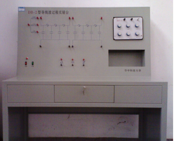 导线波过程试验台(图四所示)产生陡脉冲方波,用来进行导线波过程实验,模拟导线长度约为5600米。可通过对实验现象的观察进一步了解和熟悉电磁波在导线上运动的基本规律,并根据观察结果,计算波阻抗、波速、单位长度上的电感及电容。